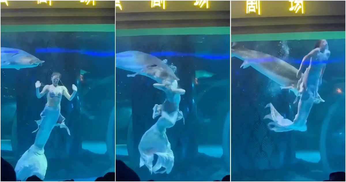 Um vídeo impressionante que circula nas redes sociais mostra o momento em que uma artista russa, que interpretava uma sereia durante uma apresentação no parque Xishuangbanna Primitive Forest Park, na província chinesa de Yunnan, na China, foi atacada por um peixe de grandes dimensões.